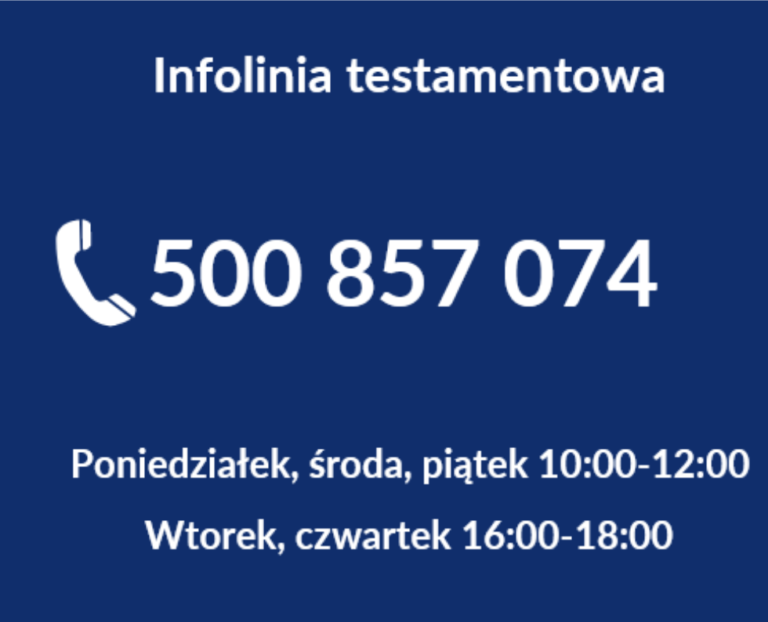 Od poniedziałku 2 października do piątku 6 października, współpracujący z nami prawnicy będą dyżurowali na infolinii testamentowej i odpowiadali na Wasze pytania.